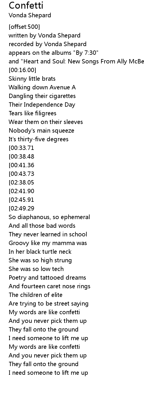 [02:54.47][02:38.05][00:46.00] My words are like Confetti