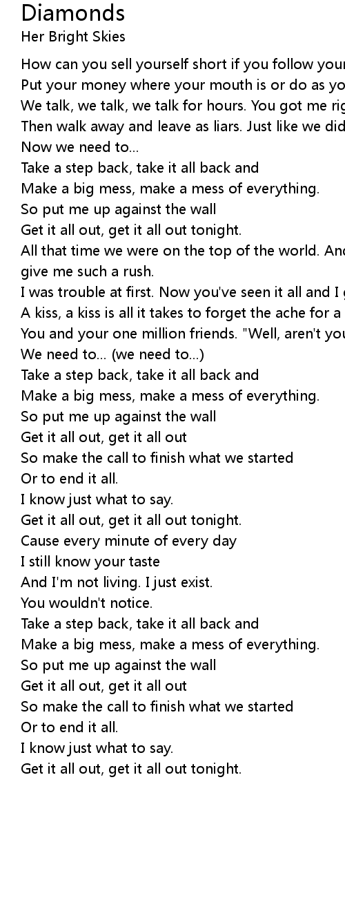 All that time we were on the top of the world. And those diamonds eyes used to give me such a rush. |