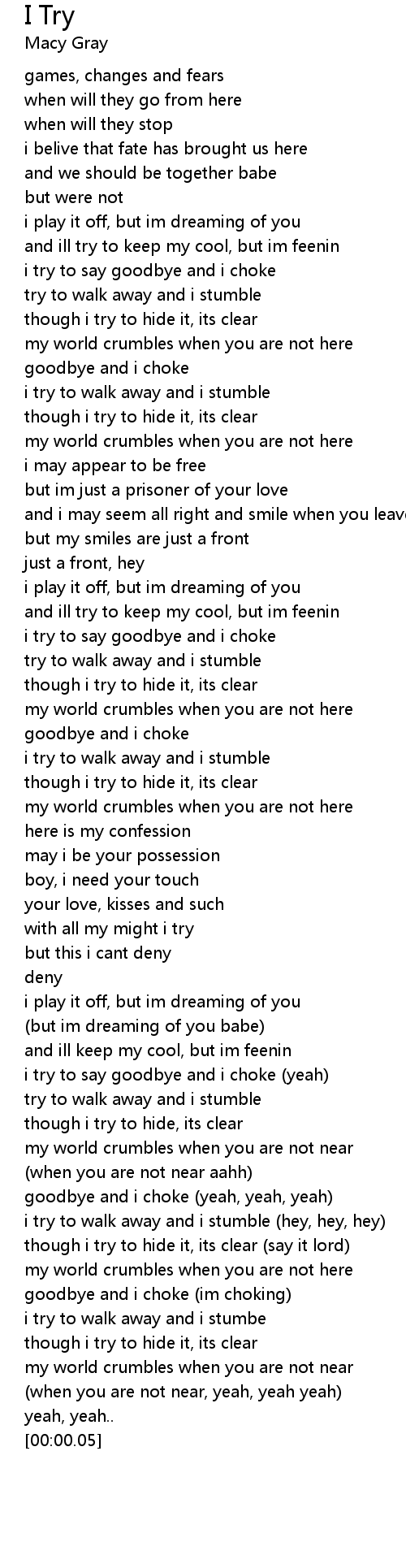| [03:05.38] | i try to walk away and i stumble (hey, hey, hey) |