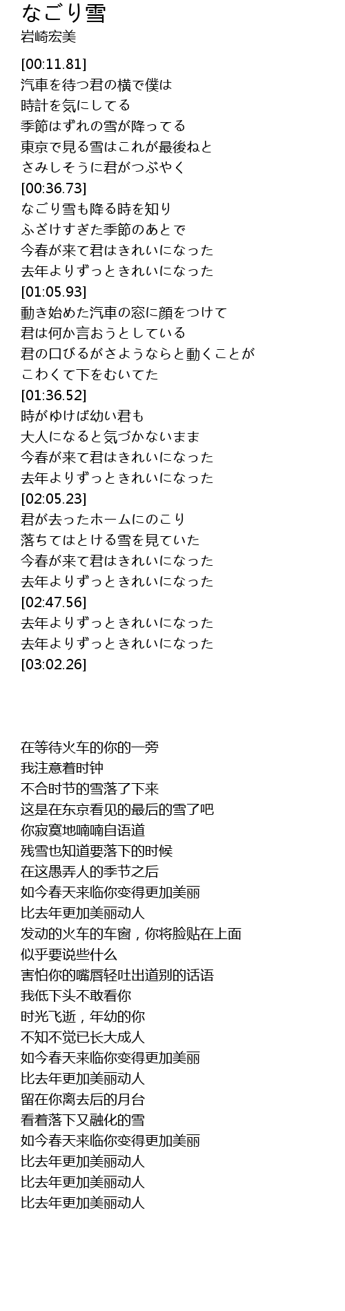 | [00:38.45] | なごり雪も降る時を知り |