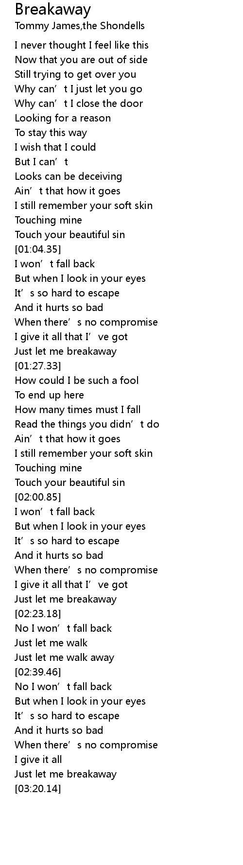 | [02:17.50] | Just let me breakaway |