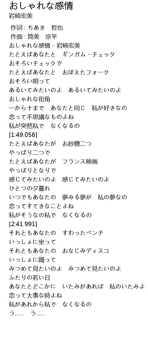 | [0:41.551] | おしゃれな感情 ‐ 岩崎宏美 |