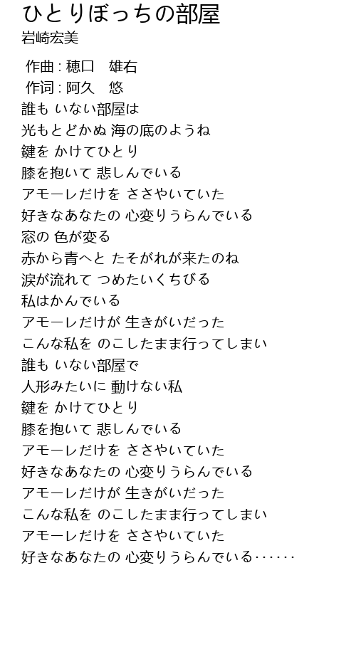 | [00:35.980] | 鍵を かけてひとり |