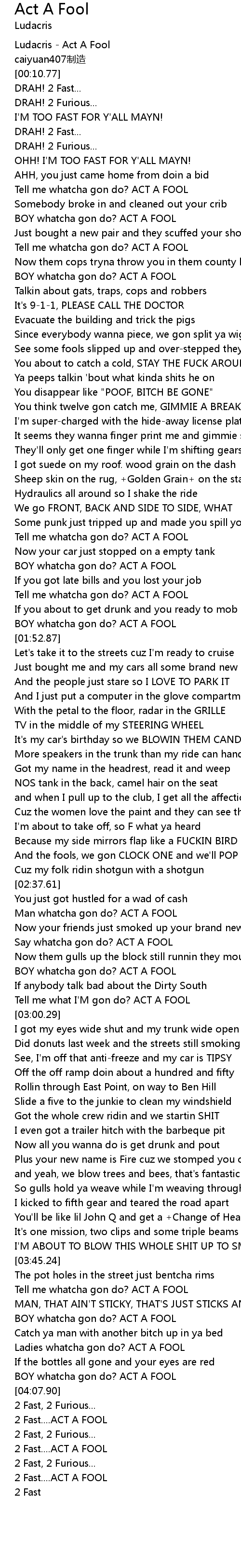 | [04:11.42] | 2 Fast....ACT A FOOL |
