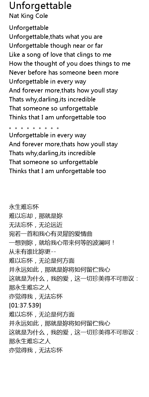 | [00:23.119] | Unforgettable though near or far |