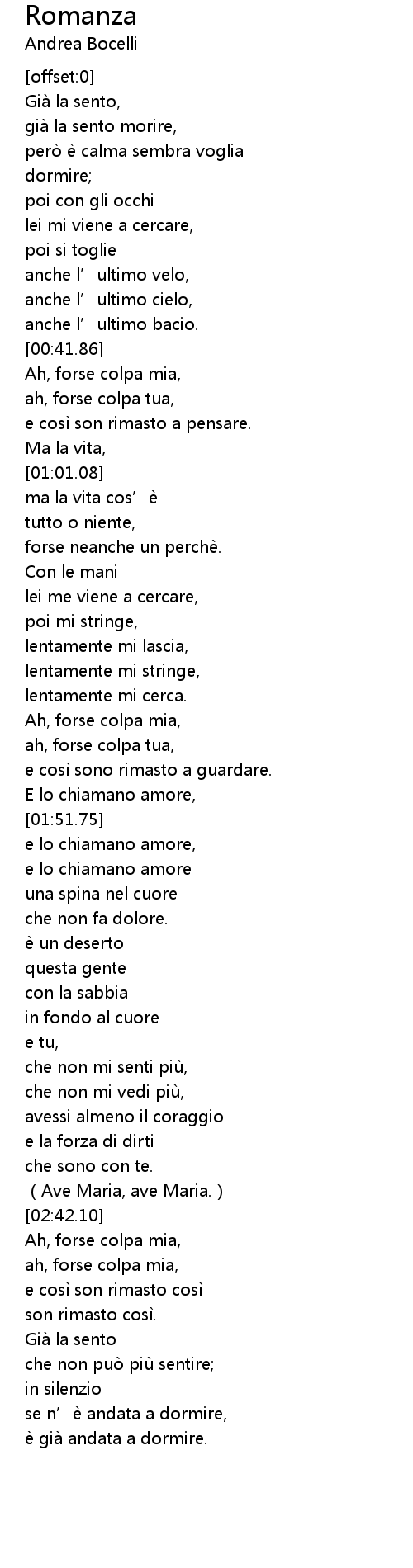 | [02:43.46] | Ah, forse colpa mia, |