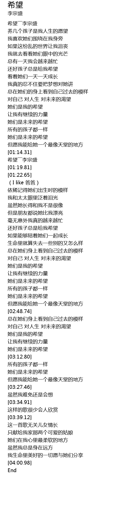 | [00:26.42] | hai hao hai zi zong shi gei wo xi wang |