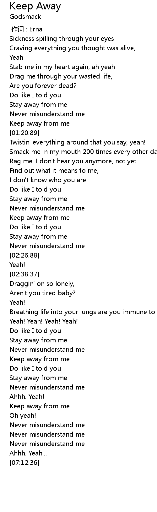 | [01:45.16] | Rag me, I don't hear you anymore, not yet |