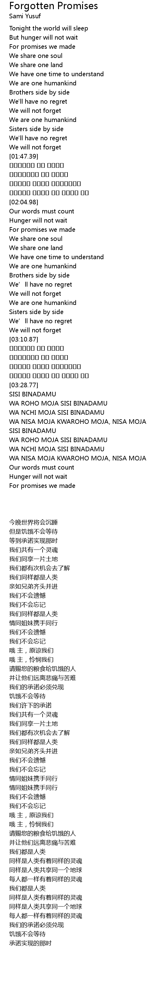 | [03:48.45] | WA ROHO MOJA SISI BINADAMU |