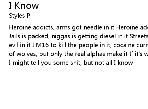 | Heroine addicts, arms got needle in it Heroine addicts, arms got needle in it Jails is packed, niggas is getting diesel in it Streets is wild, niggas is all evil in it I M16 to kill the people in it, cocaine currency is calculated A lot of wolves, but only the real alphas make it If it's war then the blood gonn flow I might tell you some shit, but not all I know |