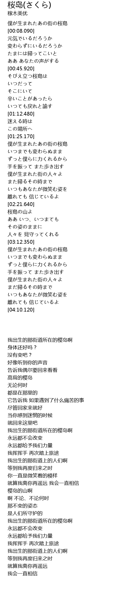 我出生的那街道所在的樱岛啊 |