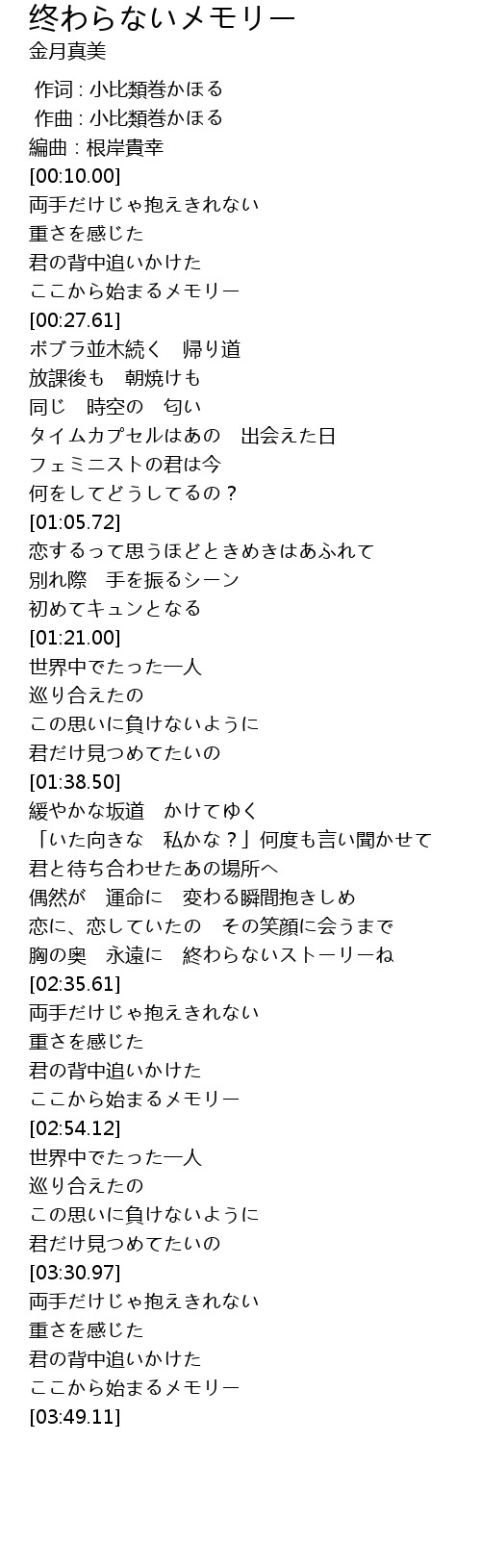 | [03:43.48] | ここから始まるメモリー |