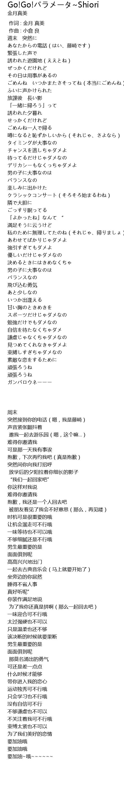 | 歌曲 | Go!Go!パラメータ~Shiori |