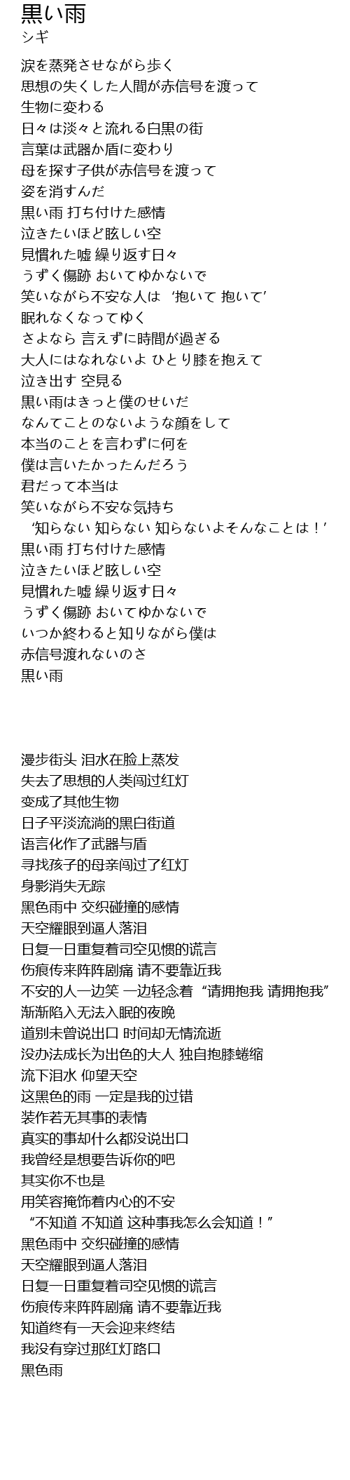 | [01:06.50] | 黑色雨中 交织碰撞的感情 |