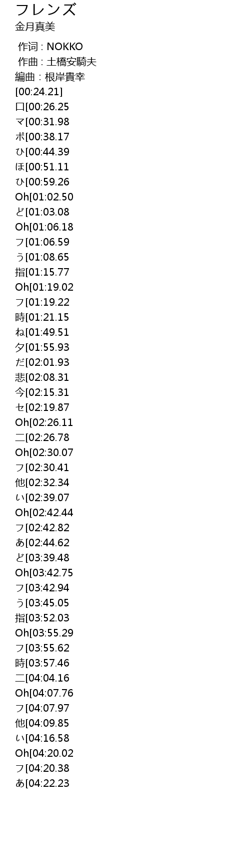 | [04:20.19]フ[04:20.38]レ[04:20.56]ン[04:21.25]ズ[04:21.45] | |
