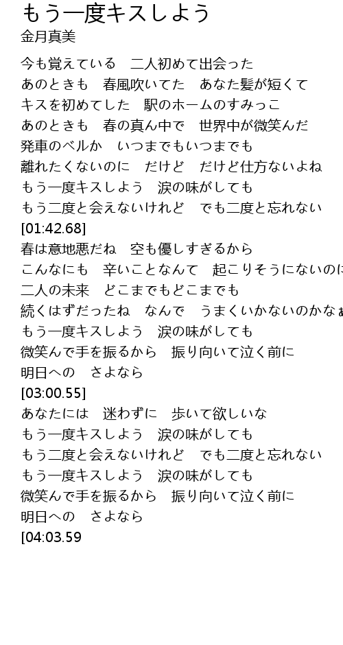 | [03:16.30] | もう一度キスしよう 涙の味がしても |
