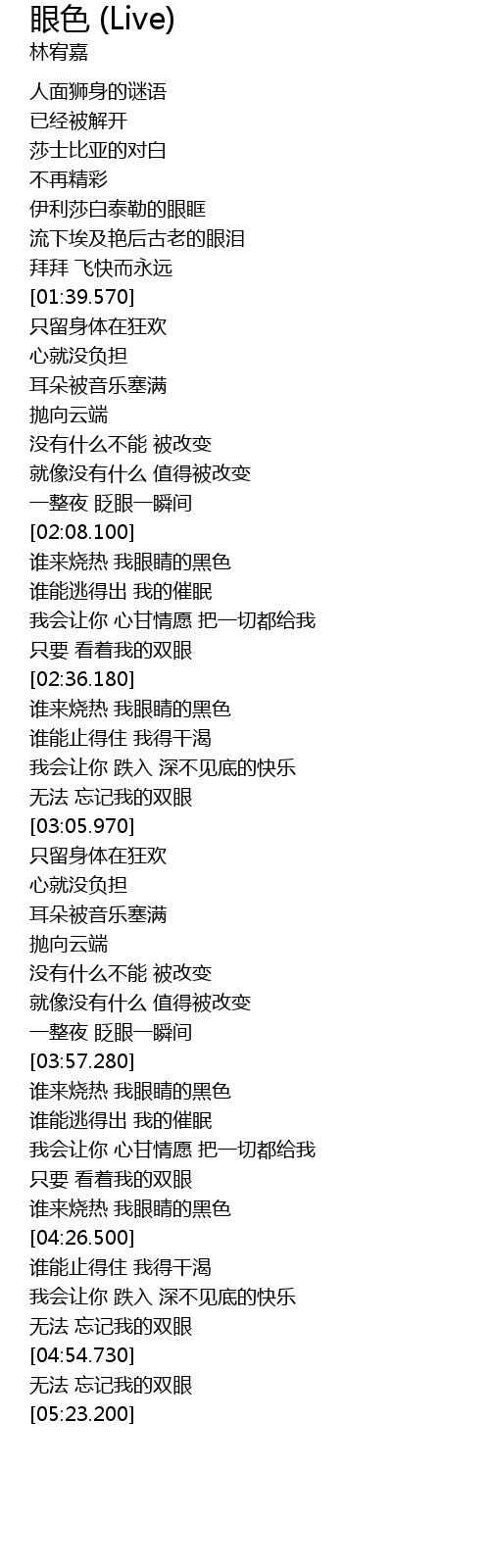| [02:36.810] | 谁来烧热 我眼睛的黑色 |