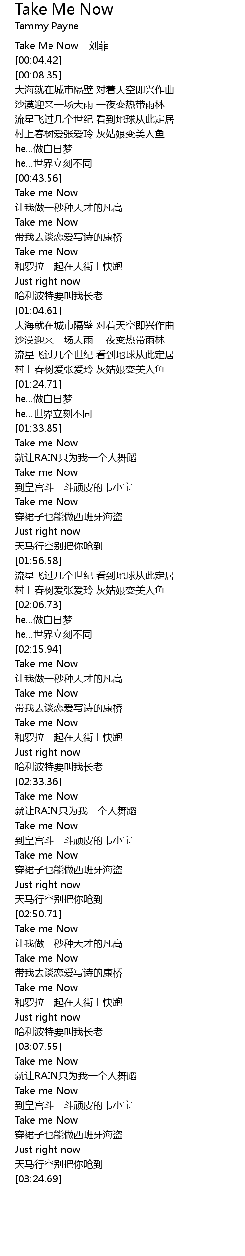 | [02:59.41] | Take me Now |