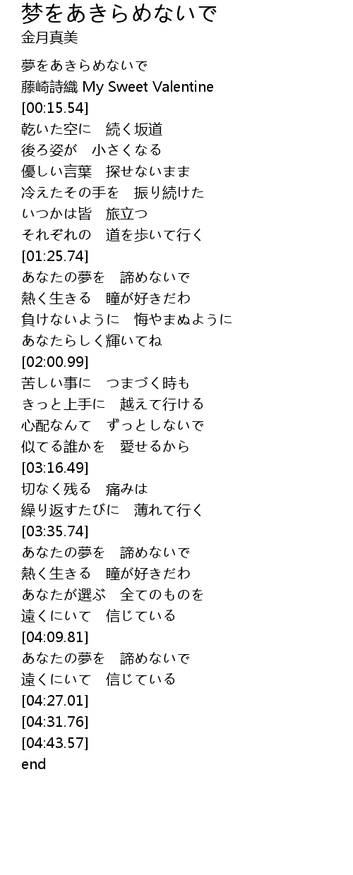 | [03:44.87] | 熱く生きる 瞳が好きだわ |