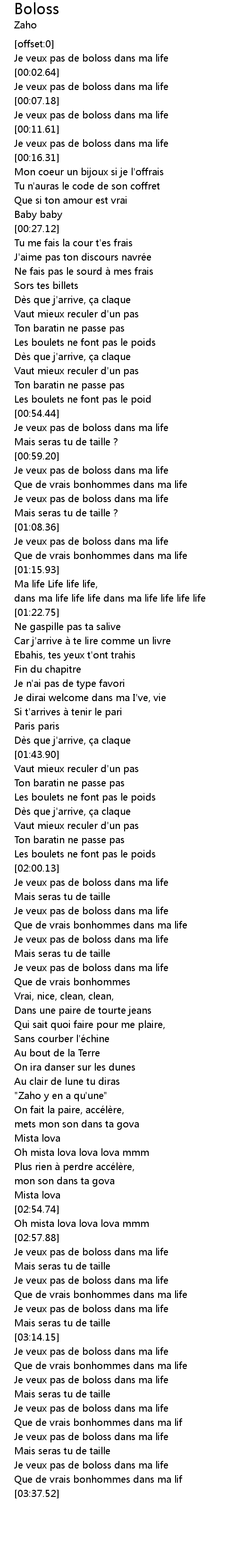 | [03:01.04] | Je veux pas de boloss dans ma life |