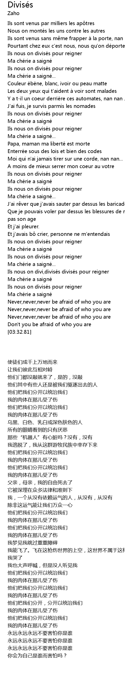 | [02:51.52] | Ils nous on divi, divisé s divisé s pour reigner |
