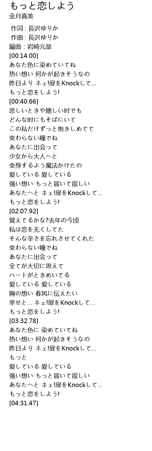 | [03:55.74] | 昨日より ネェ!扉をKnockして… |