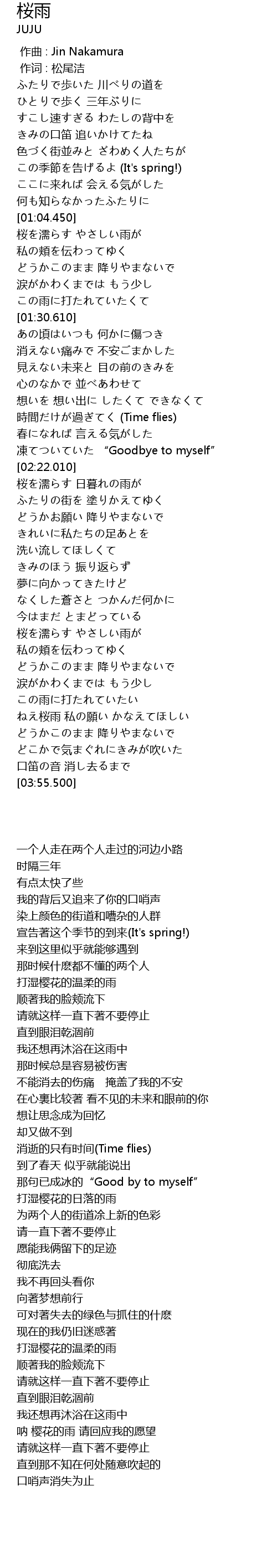 | [03:32.390] | 呐 樱花的雨 请回应我的愿望 |