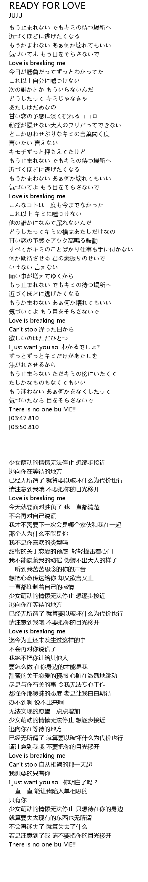 | [03:20.610] | もう止まらない ただキミの傍にいたくて |
