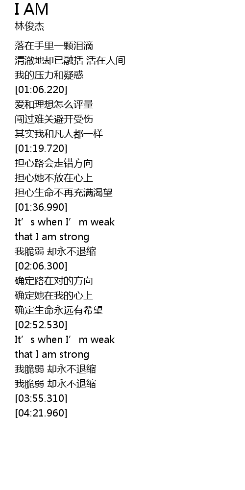 | [03:00.720] | that I am strong |