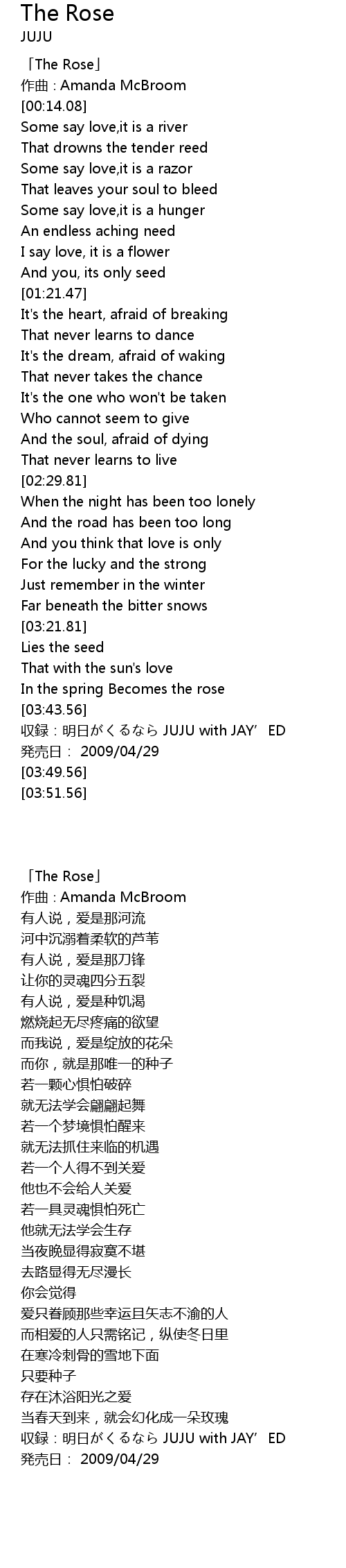 | [00:01.08] | 「The Rose」 |