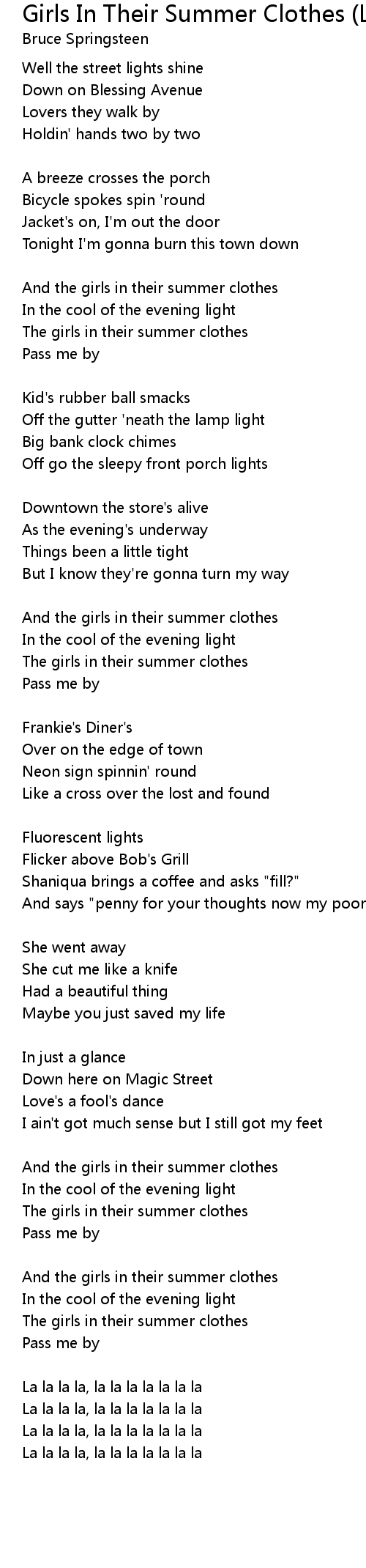 And the girls in their summer clothes |