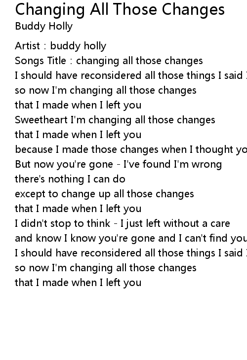 | Songs Title: changing all those changes | |