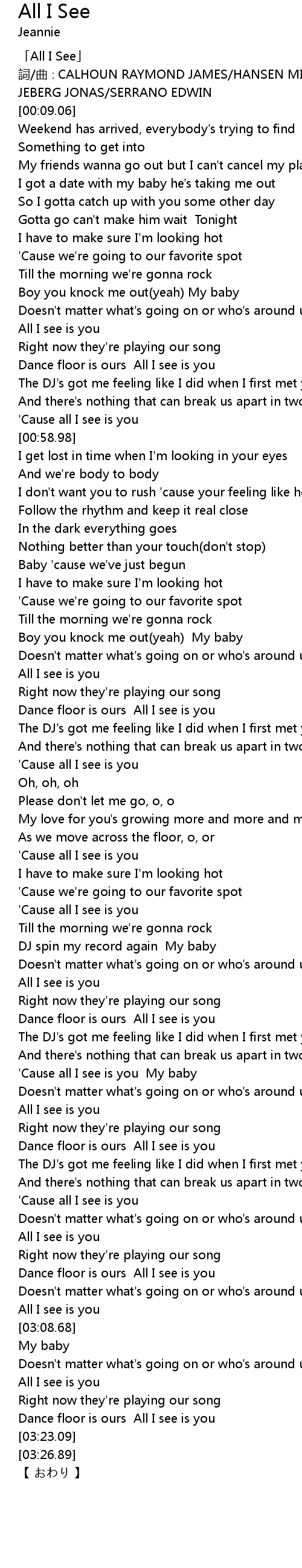 | [00:01.06] | 「All I See」 |