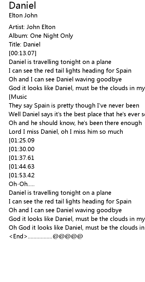 Oh God it looks like Daniel, must be the clouds in my eyes |