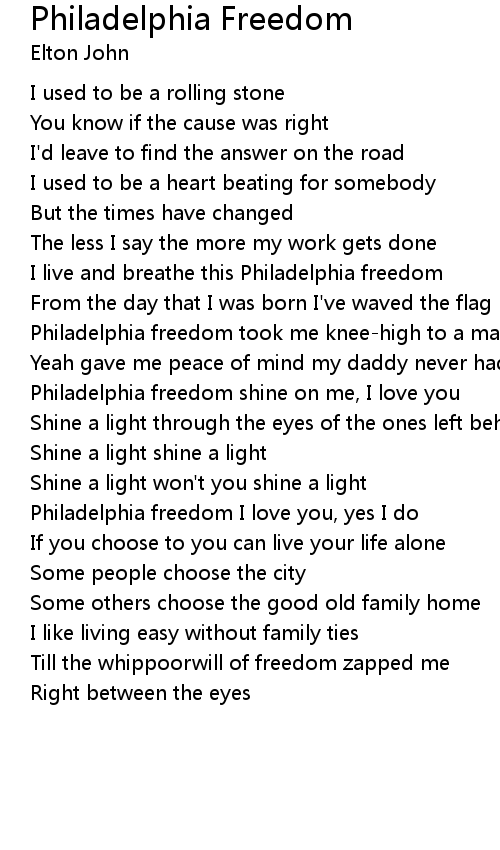 Philadelphia freedom I love you, yes I do |