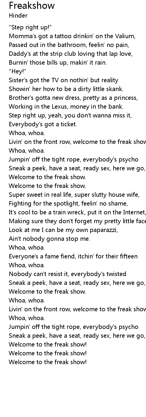 Livin' on the front row, welcome to the freak show |