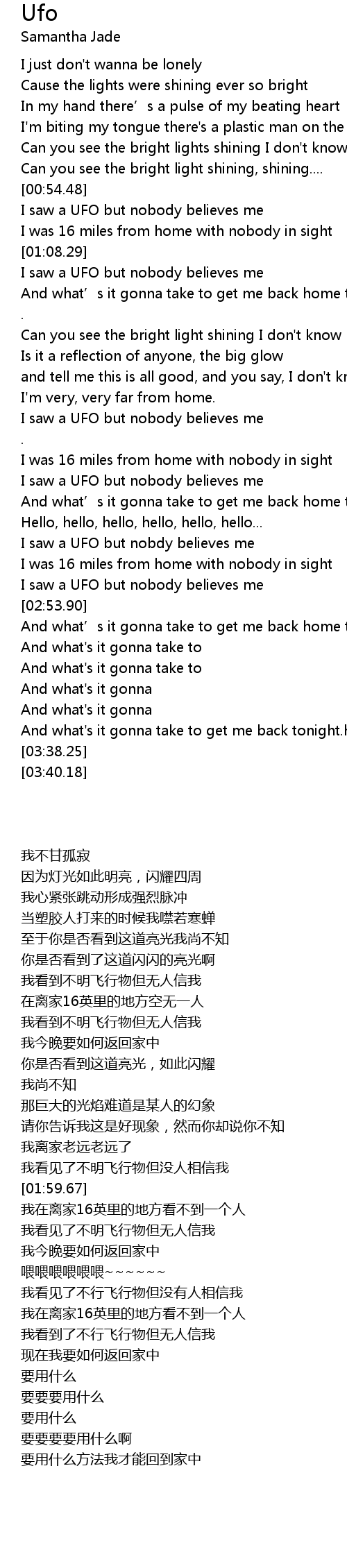 | [01:53.31] | 我看见了不明飞行物但没人相信我 |