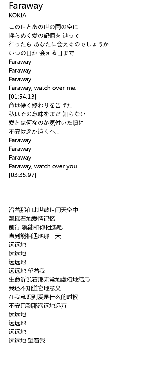 Faraway, watch over me. |