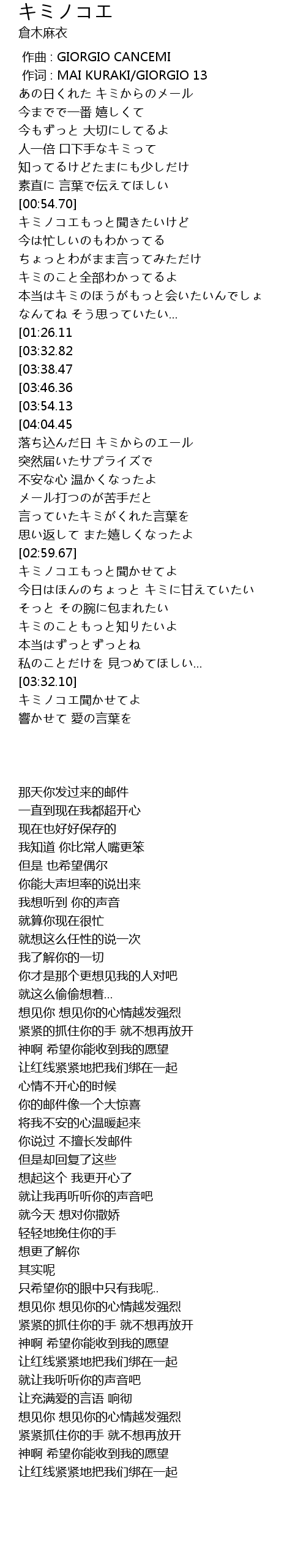 | [00:01.00] | 作词 : MAI KURAKI/GIORGIO 13 |