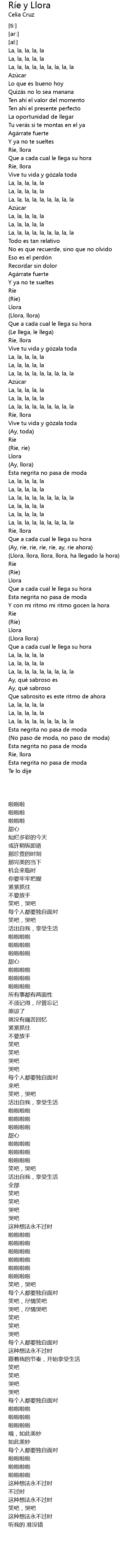 | 歌曲 | Ríe y Llora |
