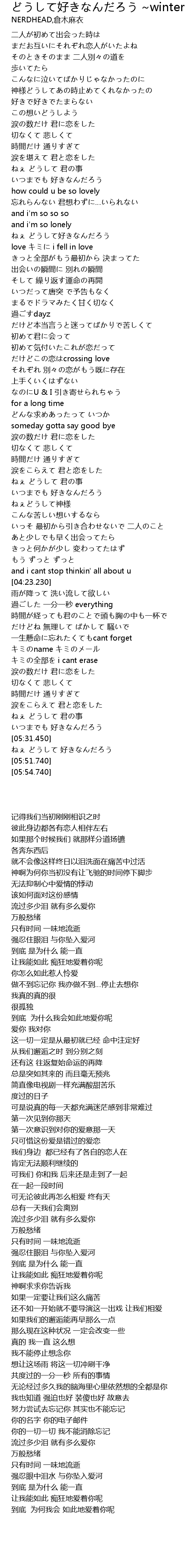 | [05:43.100] | ねぇ どうして 好きなんだろう |