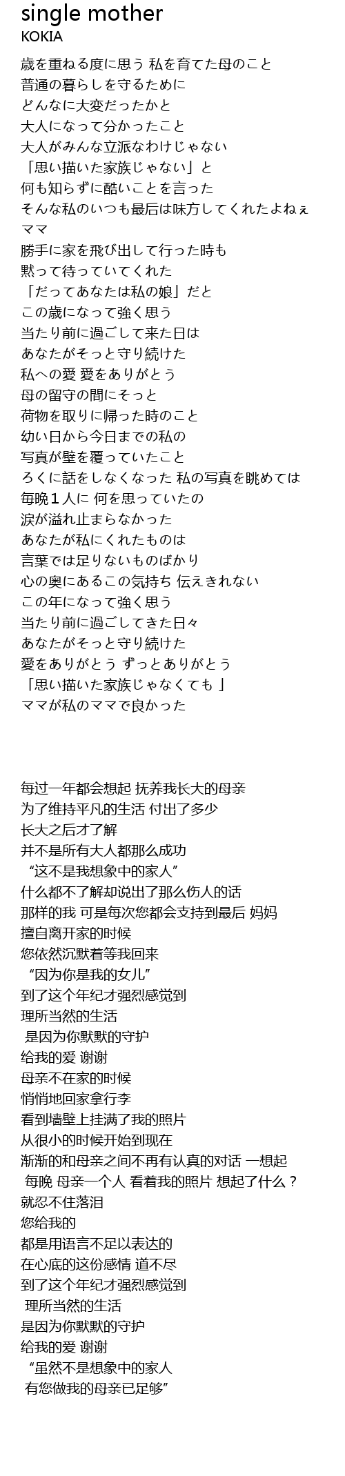 | 歌曲 | single mother |