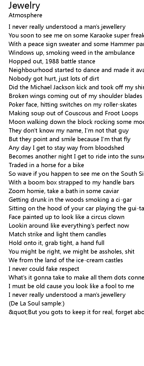 "But you gots to keep it for real, forget about your jewels and... " |