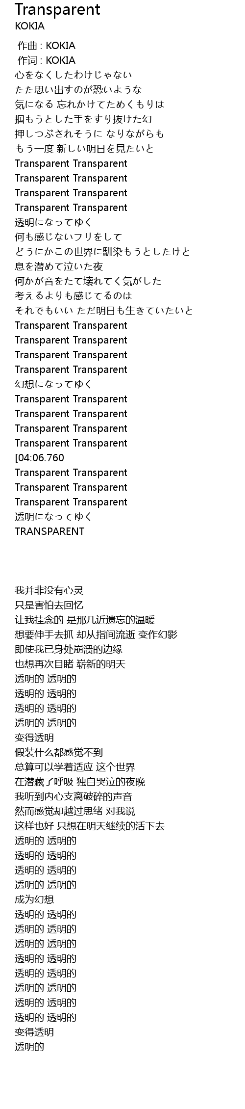 作词 : KOKIA |
