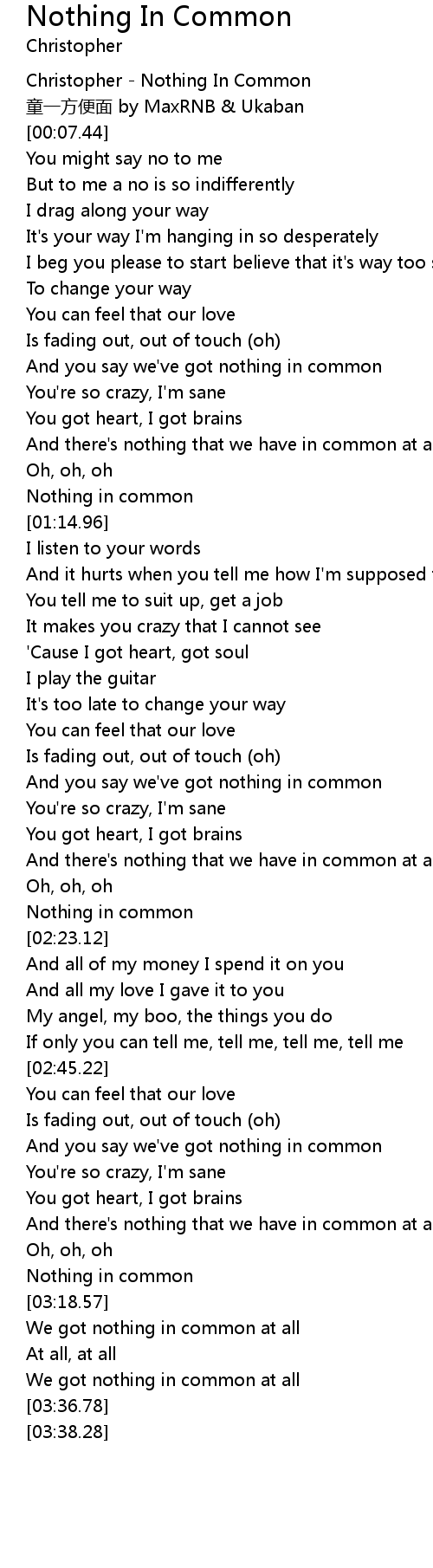 | [01:04.96] | Nothing in common |