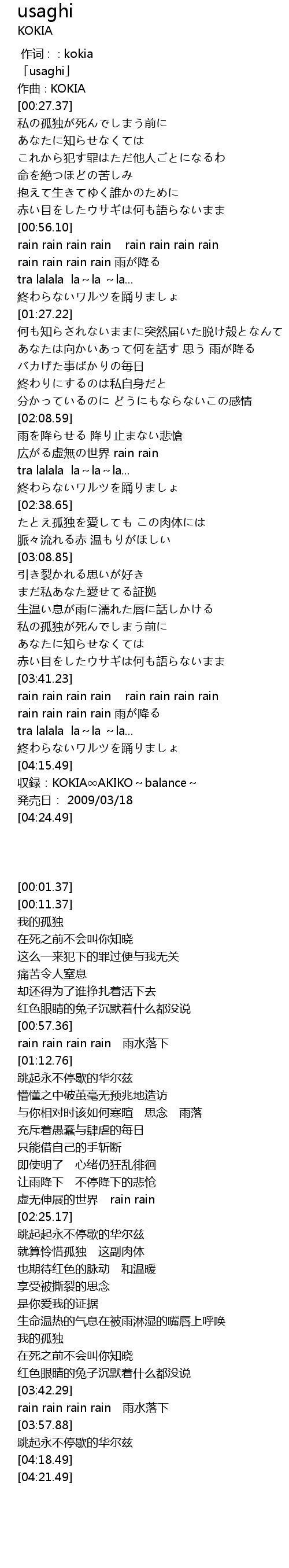 | [04:18.49] | shou lu: KOKIA AKIKO balance |