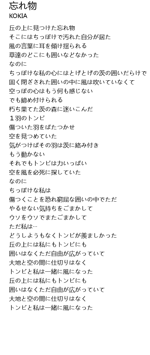| 歌曲 | 忘れ物 |