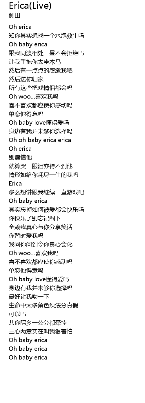 | [02:04.99] | Oh oh baby erica erica |