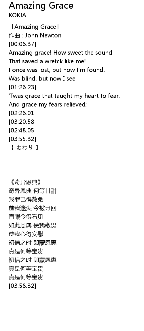 | [00:08.37] | Amazing grace! How sweet the sound |