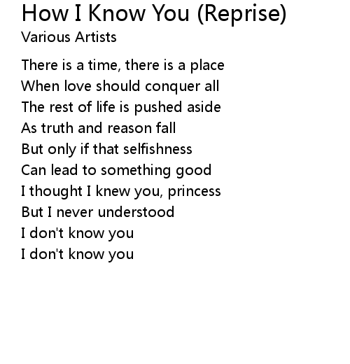 | 歌曲 | How I Know You (Reprise) |
